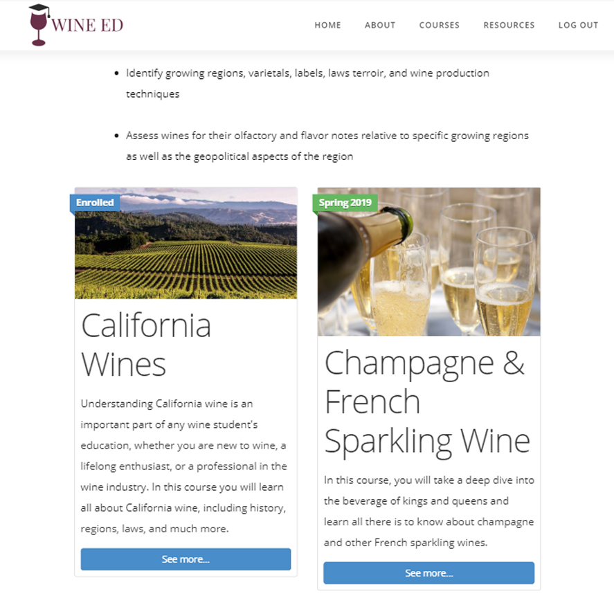 This online wine educational website made for wine and culinary students at Cabrillo College uses a learning management system, so that students can learn all about wine at their own pace and instructors can track their progress. It may be available to the public in the future.